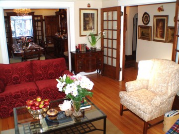 We have four guest rooms (one is a two room suite) and a large apartment with two bedrooms, a living & dining room, kitchen and full bath. All of them have quality queen beds with pressed sheets, blankets and duvets and a private ensuite bath. All the bathrooms are new or recently renovated. They are equipped with an air conditioner, private telephone, closet or armoire, comfortable chairs for watching TV or reading, flat-screen TV, clock-radio, iron and iron board, soap, shampoo and hair dryer. Wi-Fi is available throughout the house. The smoke detectors are connected to the fire department. Rates include breakfast (parking is free). We do not permit pets and smoking.