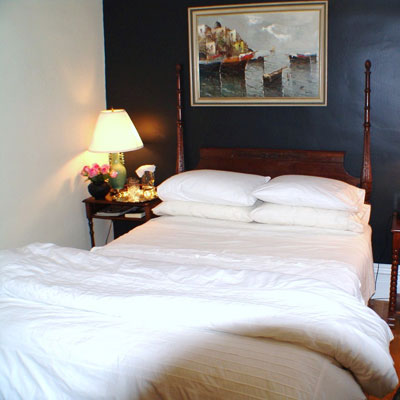 A private foyer area leads to the guest room, bath and closet. The guest room has a queen bed. The ensuite bathroom has a tub with shower. Rate for 1 person is from $112 per night (contact us for more rate information) – includes a gourmet breakfast, WiFi and parking.